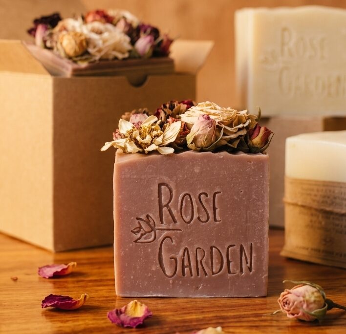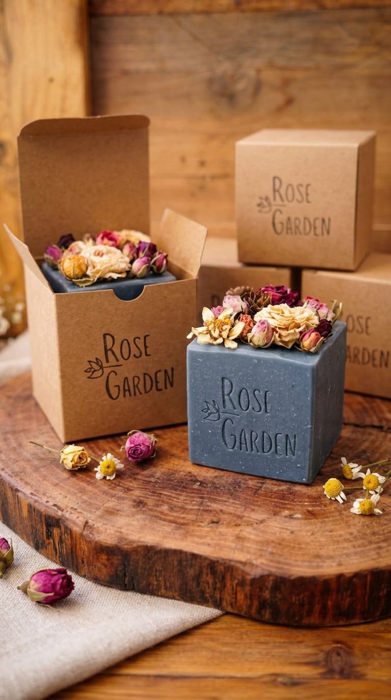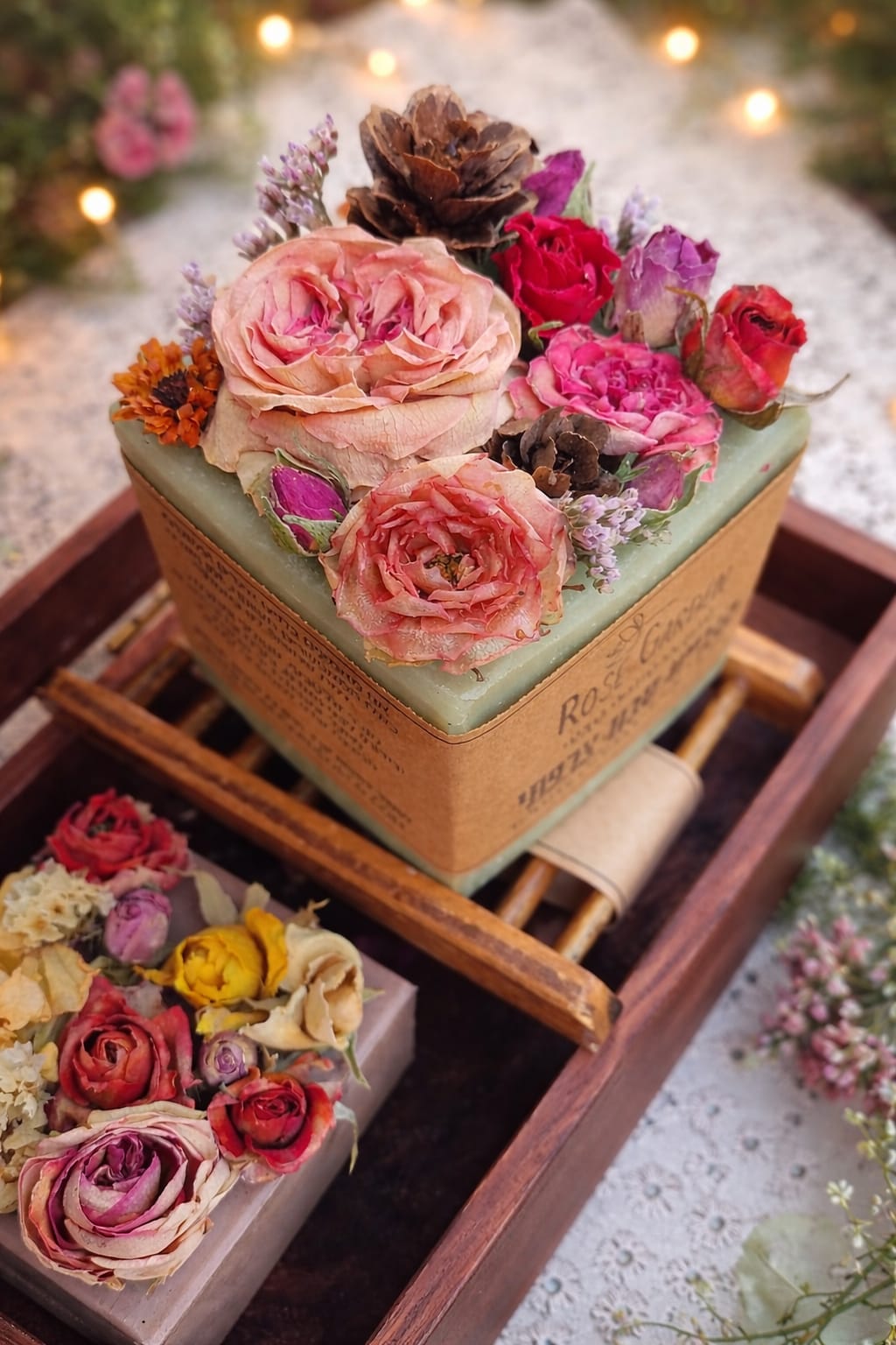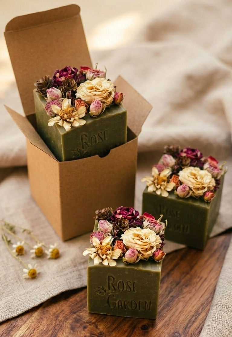 קוביית סבון משובצת פרחים (מארז מתנה)
