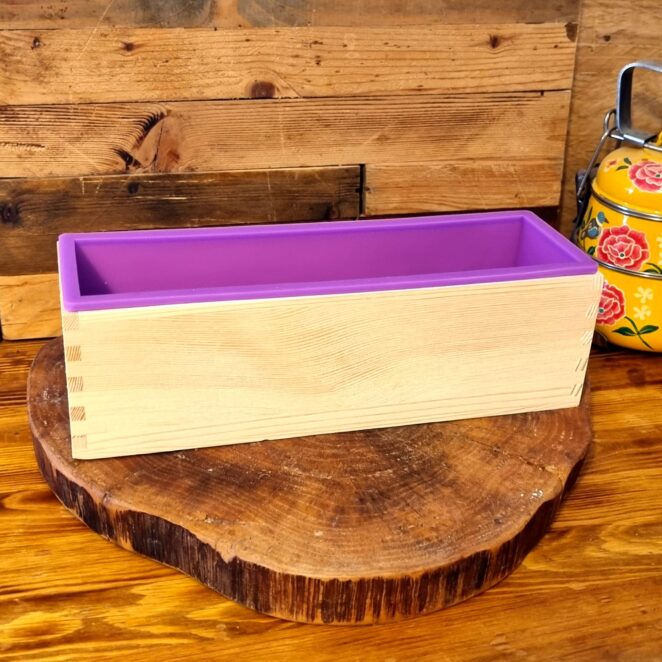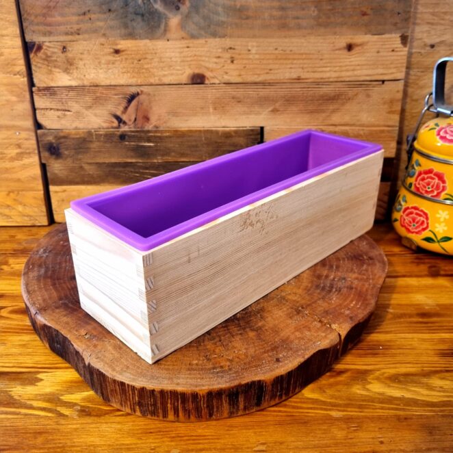 תבנית סיליקון מלבנית בקופסת עץ – להכנת 1.4 ק"ג סבון